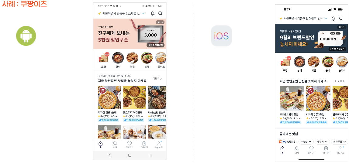 - 스마트폰의 기능 활용 가능 (GPS, 카메라 센서, Push 등)
