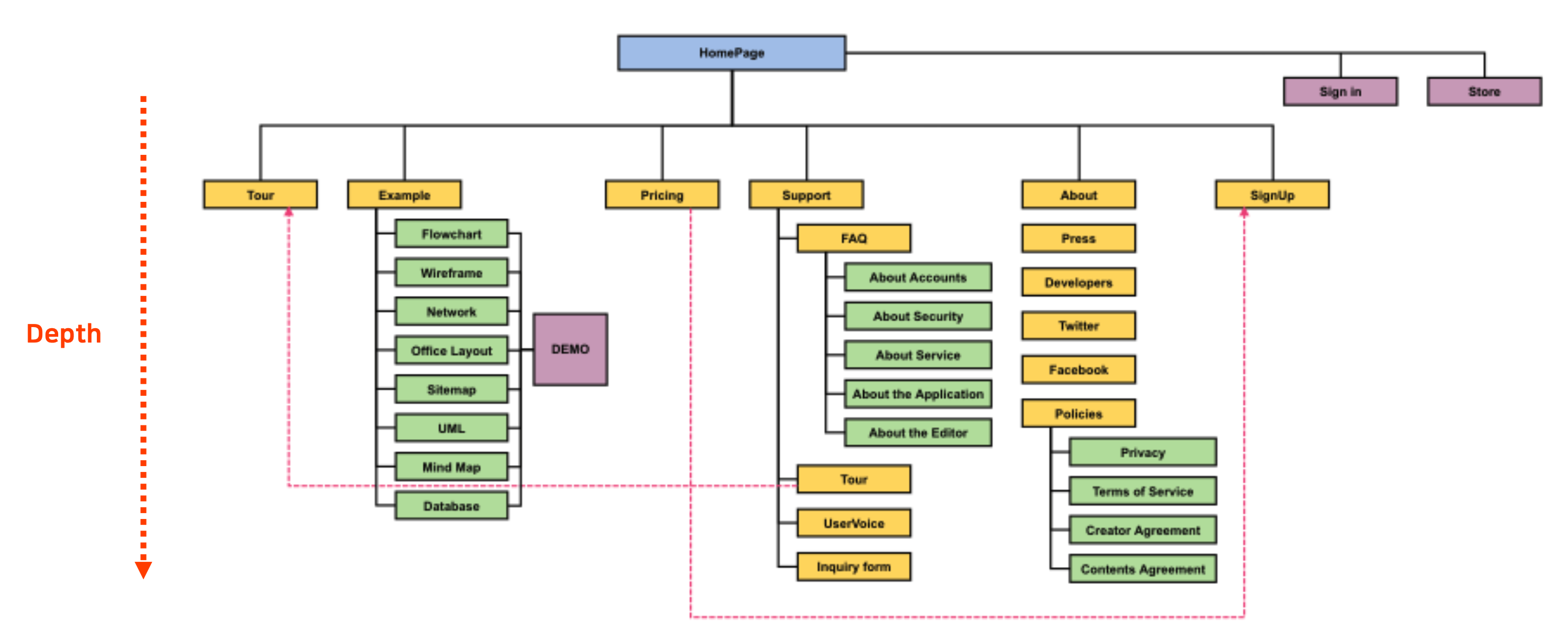 Flow Chart: 사이트의 전체의 흐름에 따라 데이터를 어떻게 처리하는지 기호나 도형을 통해 보여준다.