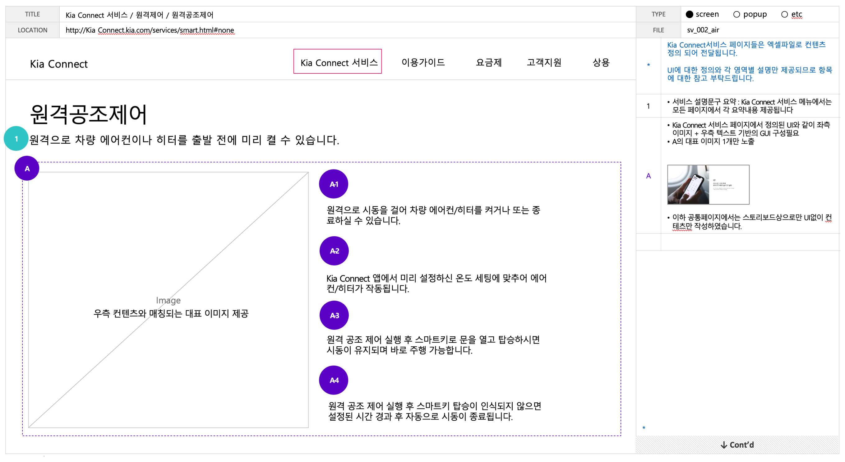 와이어프레임, 콘텐츠, 기능 정의, 프로세스, DB연동, 정책 등 서비스 구축을 위한 모든 정보를 작성하는 문서